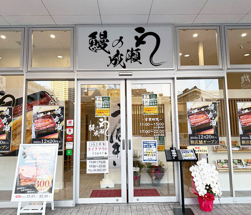 エイスクエア様からのお仕事で、SARA東館&パーキング棟にオープンされる「鰻の成瀬」様のサインを設置させていただきました!