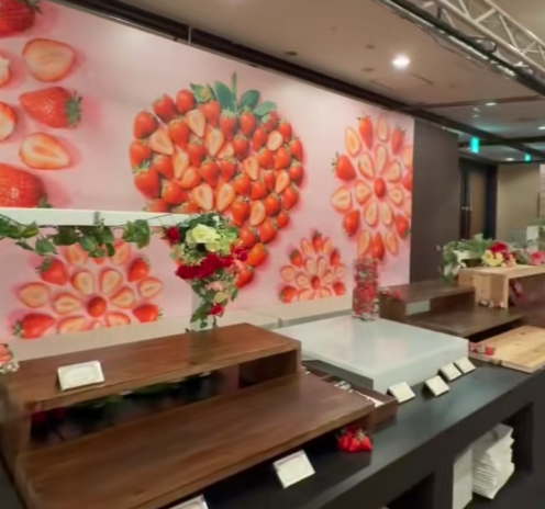 先週のブログでご紹介させていただきました、ホテルニューオウミ様の苺スイーツ&ランチビュッフェの会場装飾をさせていただきました!